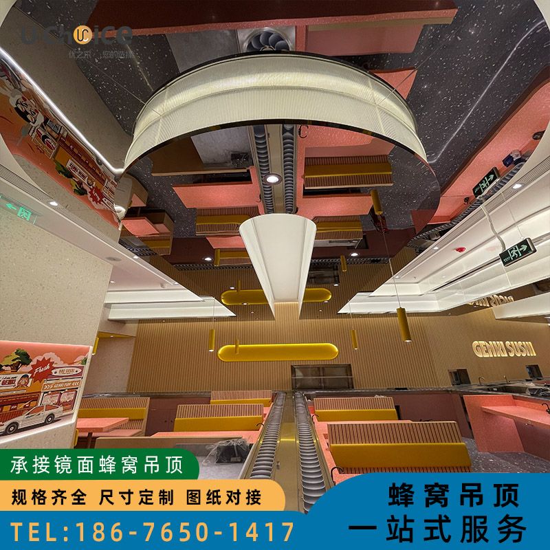 項目名稱:珠海市元氣壽司連鎖店鏡面蜂窩板吊頂