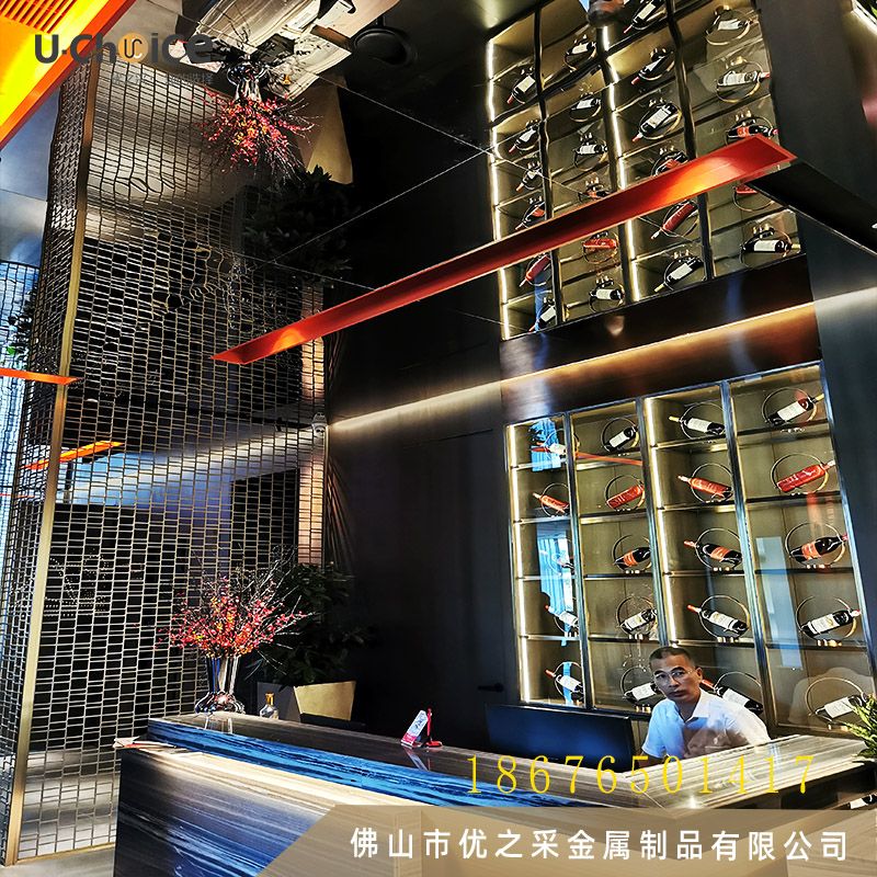 裝修材料:不銹鋼屏風(fēng)、鏡面不銹鋼蜂窩板、不銹鋼酒柜