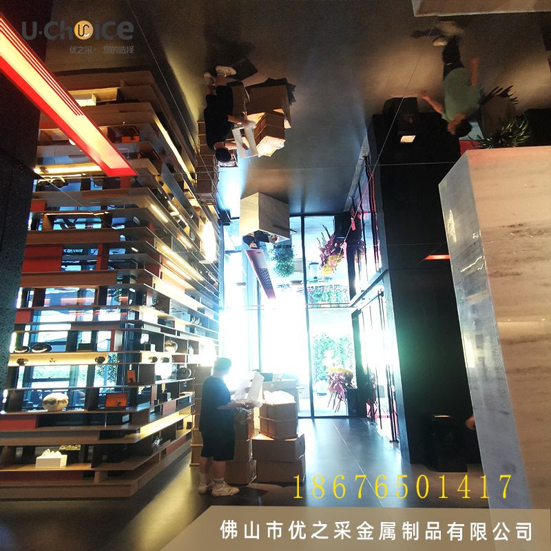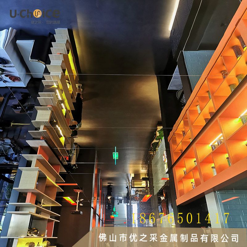 長(zhǎng)沙如意福宴采用鏡面不銹鋼蜂窩板做為吊頂,一起看看案例的安裝效果吧!