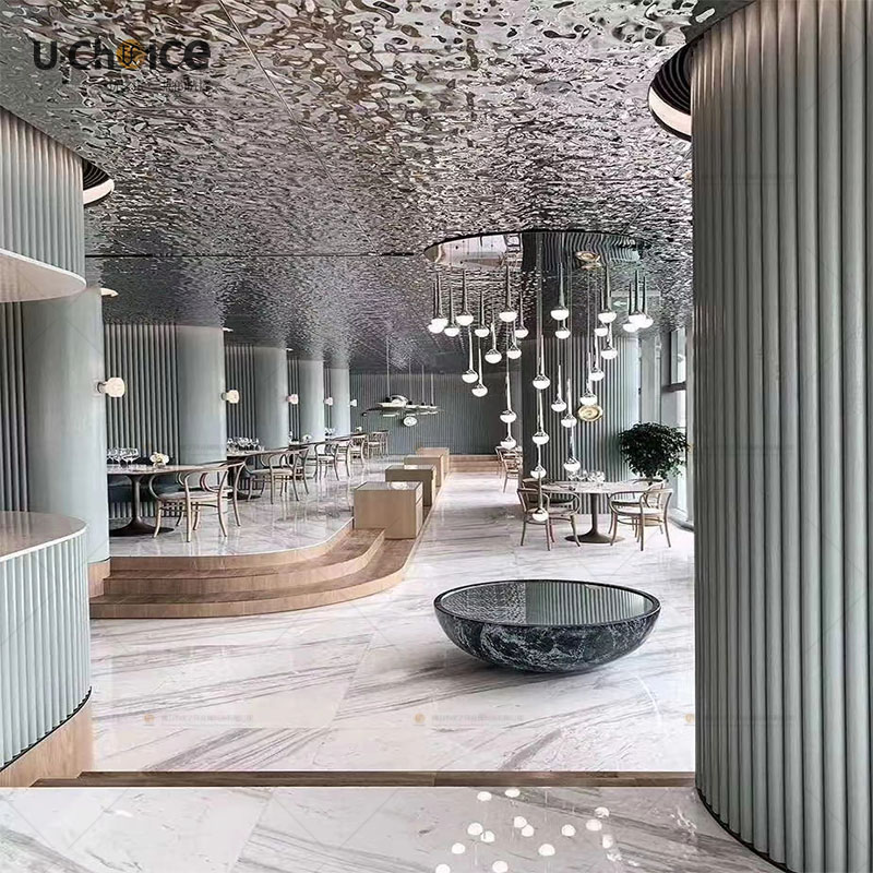 水波紋不銹鋼壓花板主體與著色層一體化,保持了原不銹鋼的基本結構和基本性能