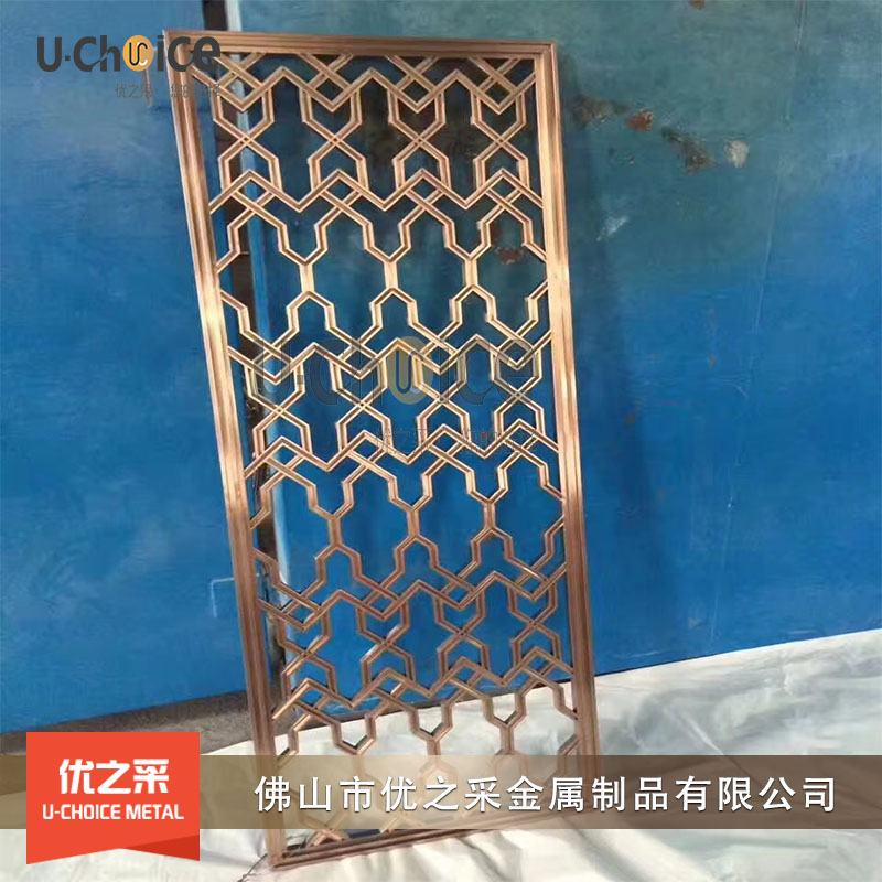 不銹鋼玫瑰金屏風隔斷,屏風如用于間隔,一般以封閉式屏風。可選鏤空式屏風,這樣可顯得活潑而有生機