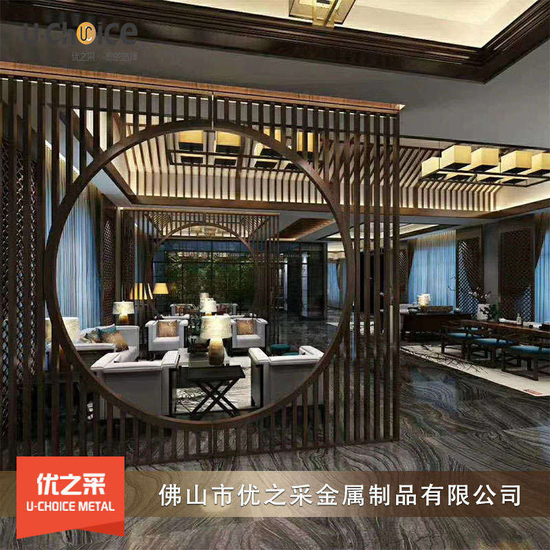 酒店室內黑鈦拉絲不銹鋼屏風,對于一款好的不銹鋼屏風能夠給整體的裝飾風格帶來了別具一格的點綴效果