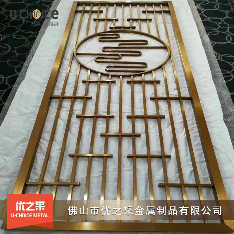 現代簡約金屬屏風,利用金屬本身的質地,本色或者加以表面處理,可以打造各種金碧輝煌,色彩斑斕